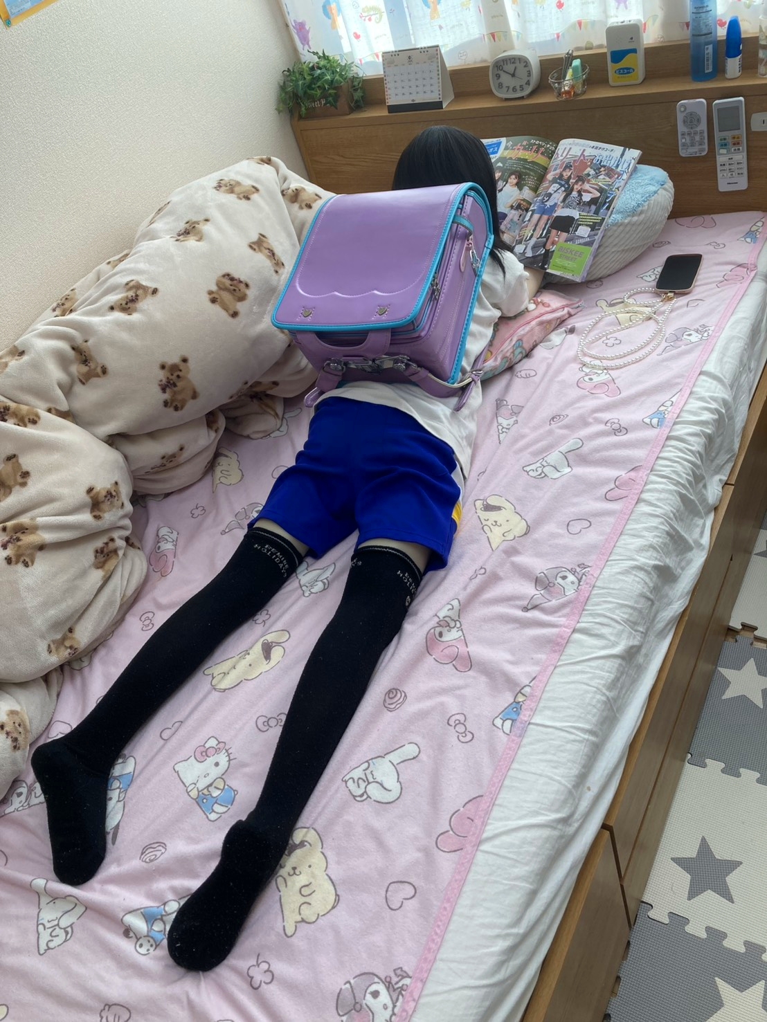 ランドセルも降ろさずにベッドでゴロゴロする娘。でも私は部屋に入った瞬間にかすかな異臭に気付きます。やったな…?