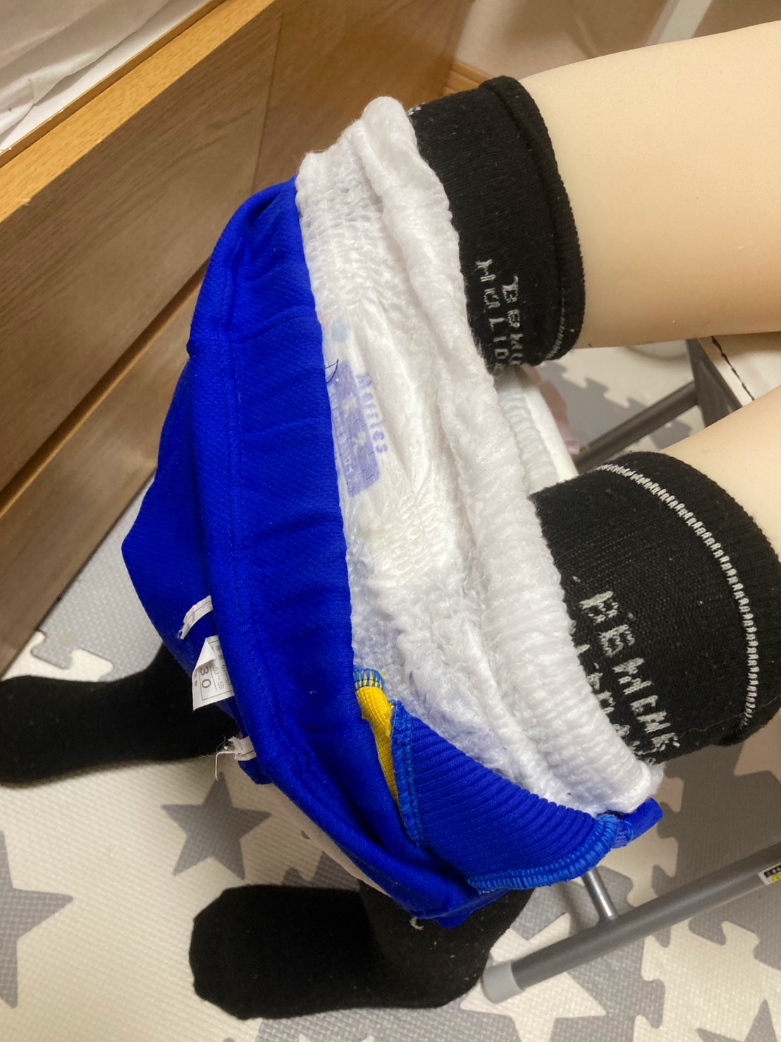 かなり伸縮性あるんですけど、股上浅くて姿勢によっては漏れそうだな…とか思っちゃいます。B+までしかないですけど、もしスーパービッグがあればほとんどの大人も履けるでしょうね笑