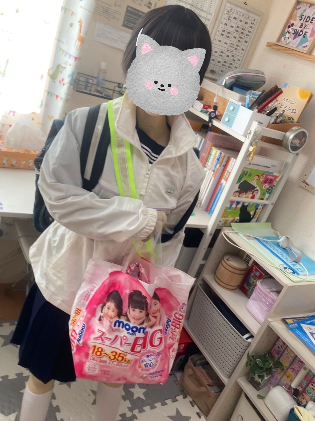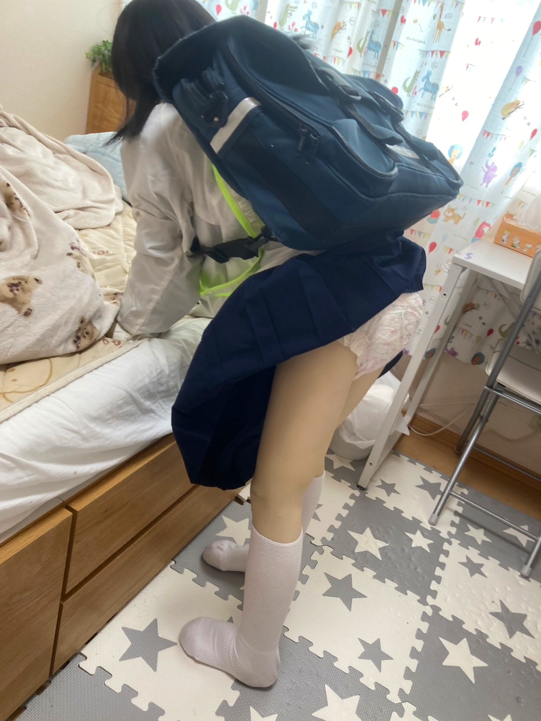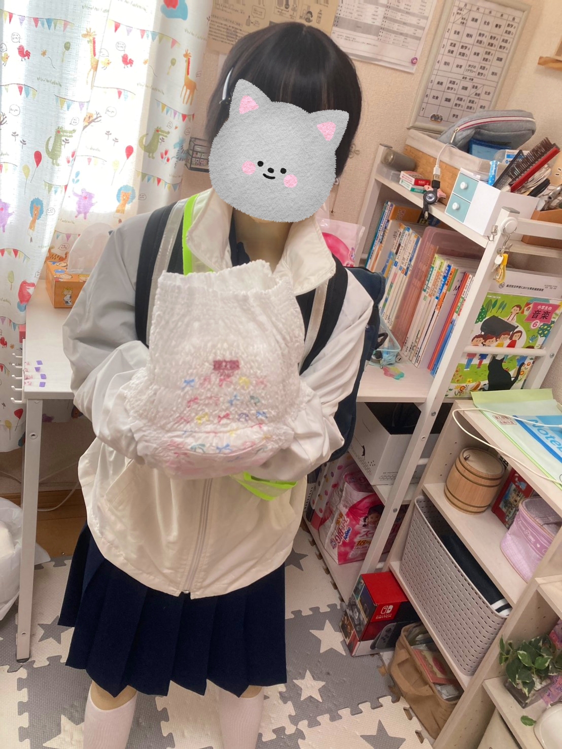 🔓記事では、制服の下にオムツを履いている様子、帰ってきておもらしオムツを脱ぐ様子をお知らせしています✨